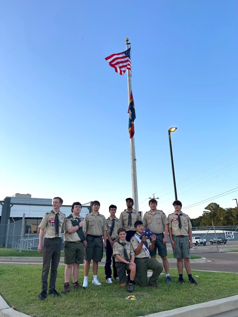 Oxford Boy Scout Troop 144 served as Color Guard for a flag retirement ceremony Sunday at the North East Mississippi Electric Power Association office.