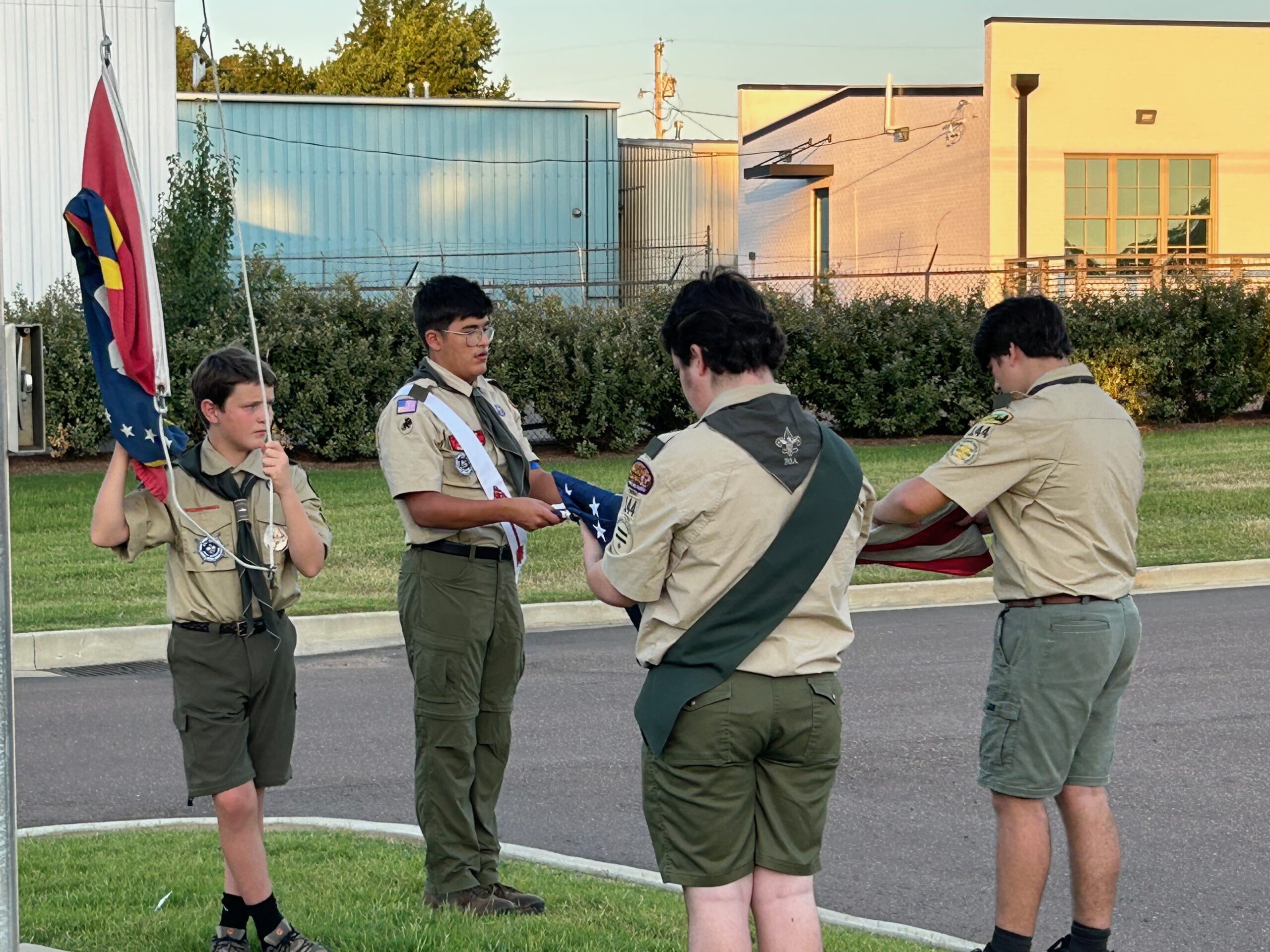As part of the ceremony, the scouts lowered the old flag, folded it and then raised the new flag.