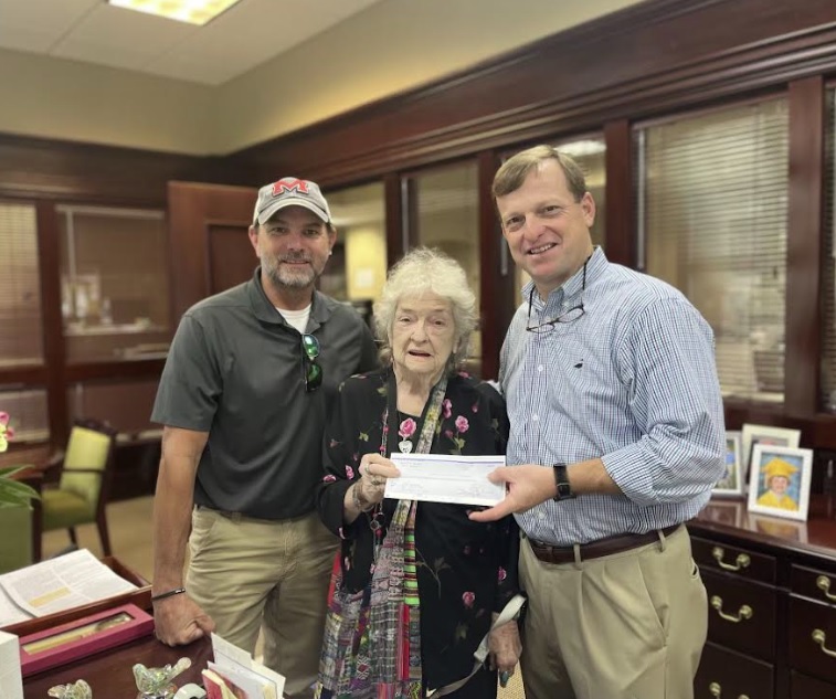 On Sept. 6, the Lafayette County Supervisor and Board President Mike Roberts, and Supervisor and Vice President Chad McLarty, presented a check to Tina Downing to purchase 1.3 acres of property in the Harmontown community for the new sheriff’s department substation.