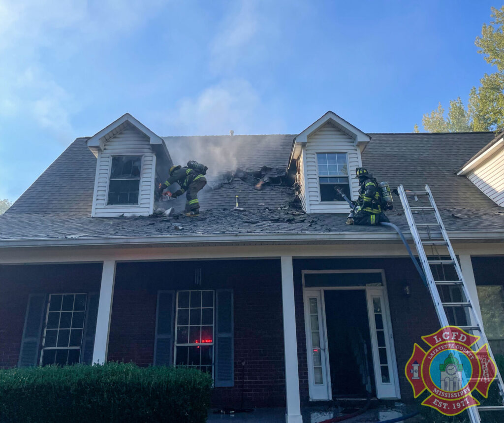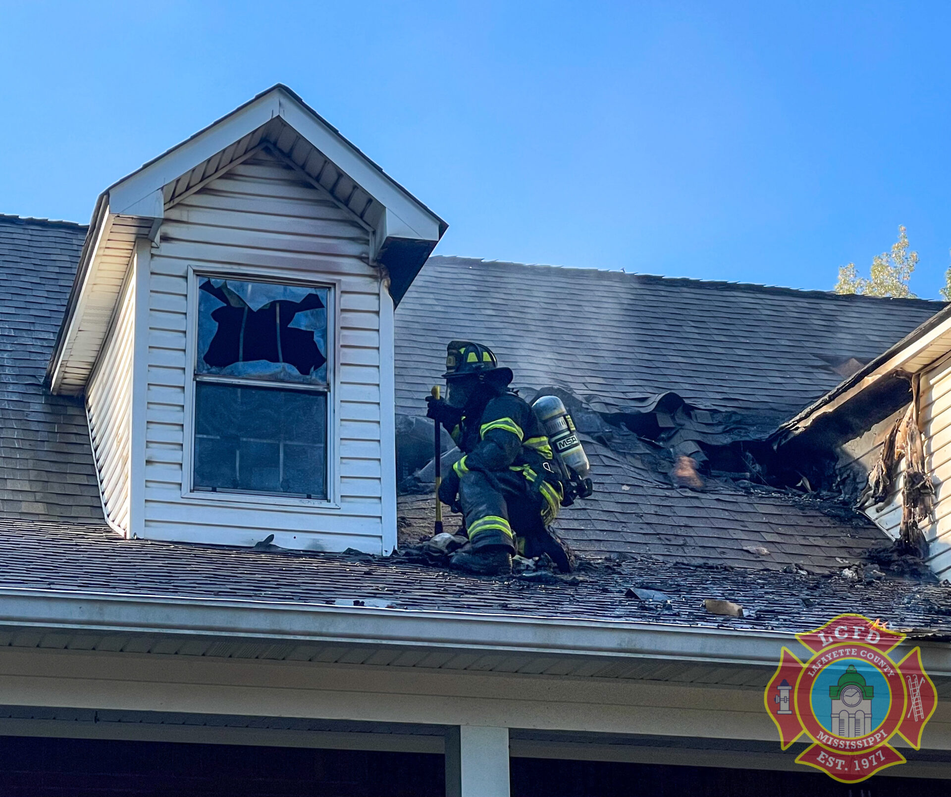 The Lafayette County Fire Department responded to a house fire Sunday after receiving a report of a smoking roof at 615 Highway 6 West.