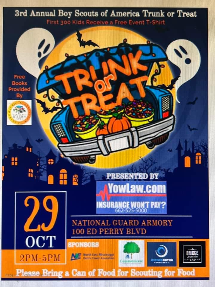 2-5 p.m. Boy Scouts Trunk or Treat at Armory on Ed Perry Blvd. (please bring a can of food)
