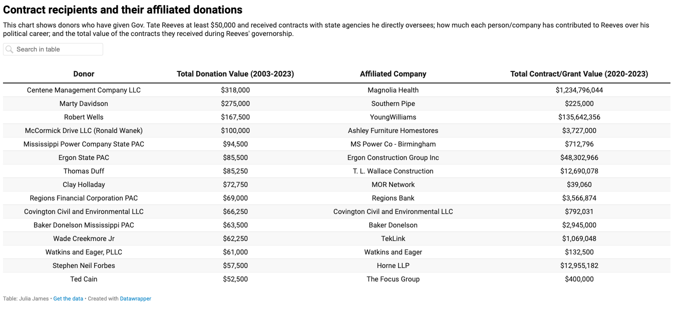 READ MORE: How we reported our investigation into state contracts awarded to Gov. Tate Reeves’ top donors