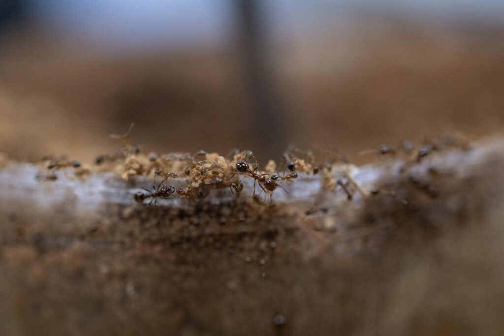 Fire ants live in mounds, which creates a microenvironment that protects them from the outside environment. The scientists use bioassays, or biological tests, that leverage the digging behavior of the fire ant. They treat sand with natural compounds to test their repellency and toxicity.