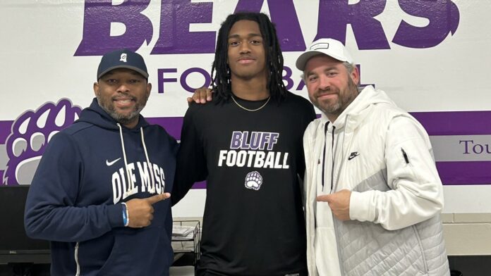 Appreciate @CoachGolding and @CoachB_BROWN coming in to sit down with me and my family. Enjoyed the time and can’t wait to get back on campus! @OleMissFB @CBluffFootball @BluffRecruits @CoachDPena @AndrewDyer1628 pic.twitter.com/3WKCXiVh2K